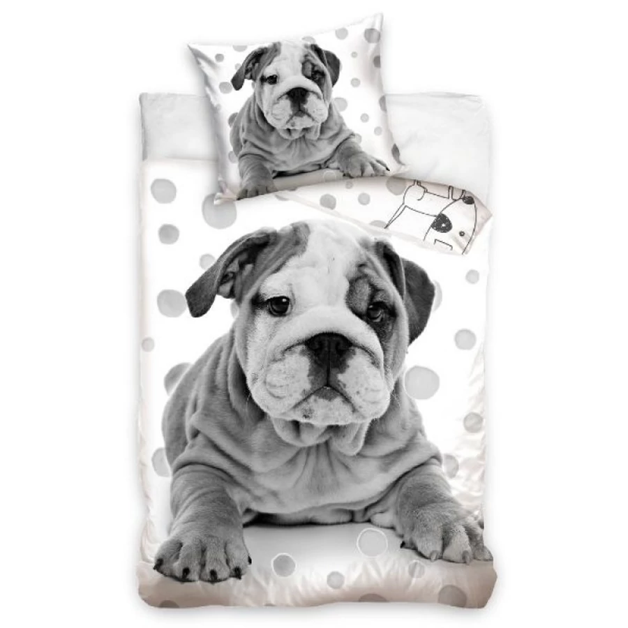 Elragadó kis, angol buldogos ágynemű-garnitúra, 100% pamut anyagból, kiváló minőségben.