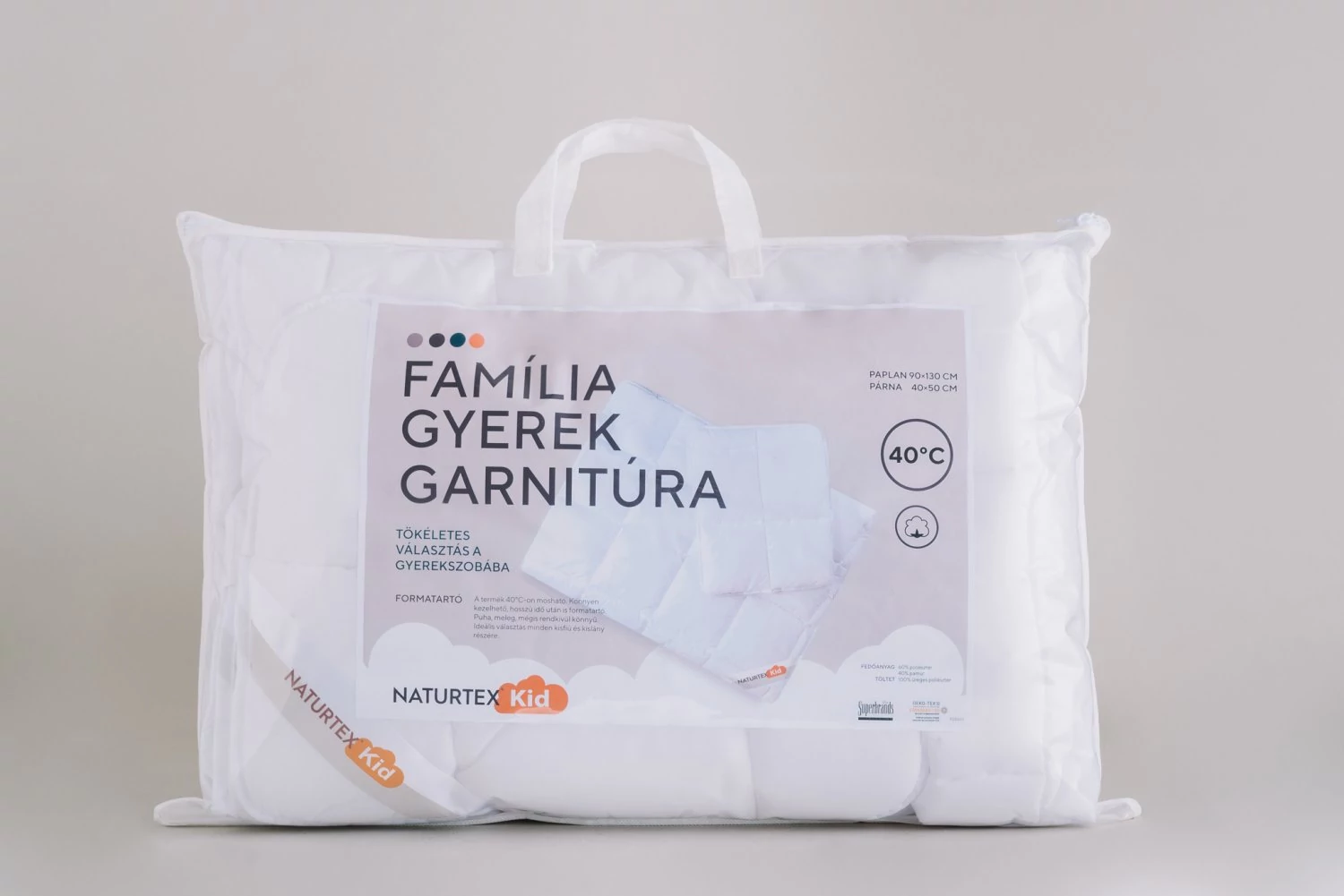 A Família gyerekgarnitúra tökéletes megoldás, ha gyermeke számára megbízható, higiénikus és kényelmes alvókörnyezetet szeretne kialakítani. A szett egy 90×130 cm-es paplant és egy 40×50 cm-es párnát tartalmaz – ezek a méretek ideálisak a kisebb gyermekek számára, különösen az óvodás korosztály igényeihez igazodva.