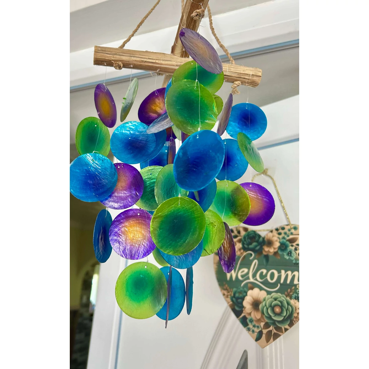 A Zöld és Lila – Uszadékfa Kereszt Szélcsengő különleges formája és színvilága révén egyszerre dekoratív és jelentéssel teli. Indonéziában kézzel készített, újrahasznosított üvegekből és valódi uszadékfából álló darab, amely a természetesség és a fenntarthatóság jegyében született.