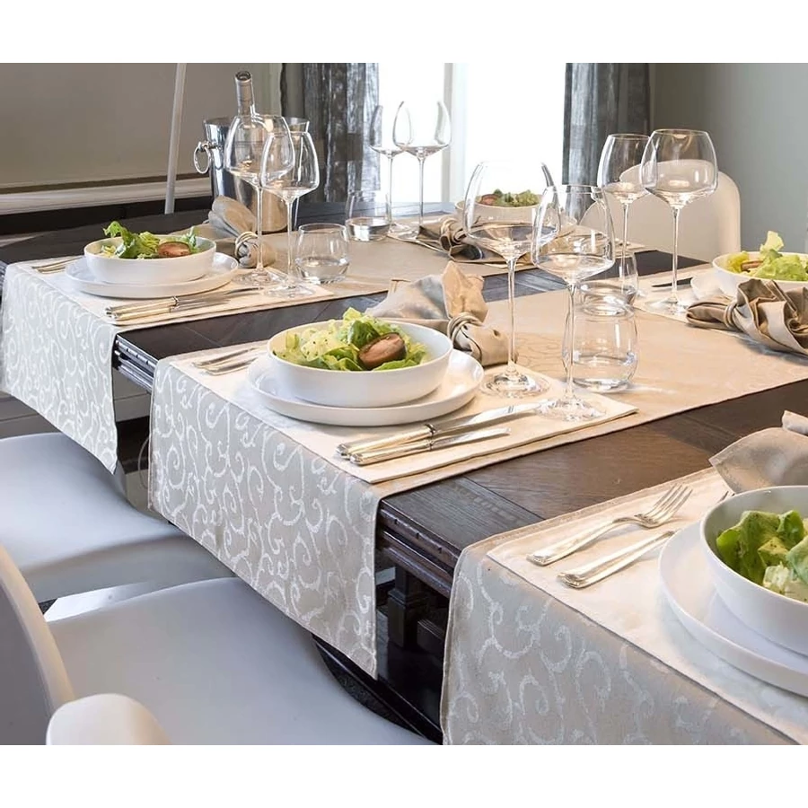 Az ekrü színű, teflonos vízlepergető futó asztalterítő kiemelkedő választás mindazok számára, akik a stílust és a praktikusságot egyaránt szem előtt tartják étkezőasztaluk díszítésekor. A prémium minőségű belgiumi textil nemcsak kellemes tapintást biztosít, hanem a speciális teflonos bevonat révén kiemelkedő folyadék- és szennytaszító képességgel rendelkezik. Ez a modern asztalterítő elegáns megjelenése mellett rendkívül könnyen karbantartható. Legyen szó frissen kiöntött kávéról, vörösborról vagy levesről, a terítő védelmet nyújt a nem kívánt foltok ellen, így biztosítva a stresszmentes étkezéseket. A tisztítása is rendkívül egyszerű: elegendő egy nedves mosószeres szivaccsal vagy törlőkendővel áttörölni, és a szennyeződések pillanatok alatt eltávolíthatók, anélkül hogy foltok maradnának vissza. Két elegáns színválasztékban érhető el, lehetővé téve, hogy tökéletesen kombinálja különböző asztalközépekkel, ezzel tovább fokozva ünnepi és mindennapi étkezései hangulatát. A Teflonos Ekrü Vízlepergető Futó Asztalterítő 45x138 cm ideális választás különleges alkalmakhoz és a mindennapi használathoz egyaránt, így garantálva, hogy asztala mindig vonzó és ízléses legyen. Válassza a könnyedséget és a stílust egy időtálló darabbal!
