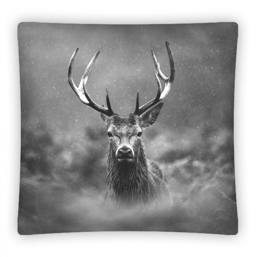 Lenyűgöző, fekete-fehér színű, szarvas mintás microfiber díszpárnahuzat. Ajándéknak is kitűnő választás.